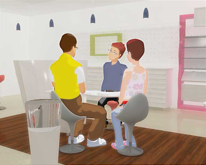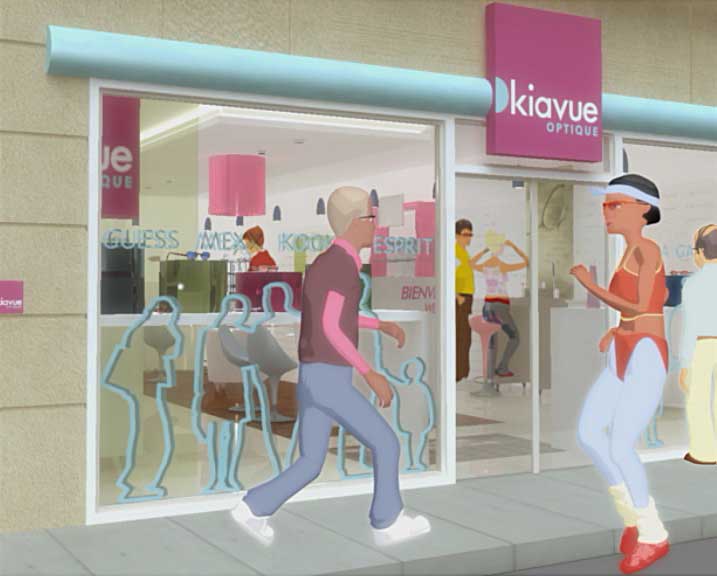 Une commande vidéo réalisée dans le cadre de la vente du concept de magasin 'Kiavue' pour les opticiens… Modélisation, texturing et animation du concept global du magasin et d'une quinzaine de personnages en 3D…